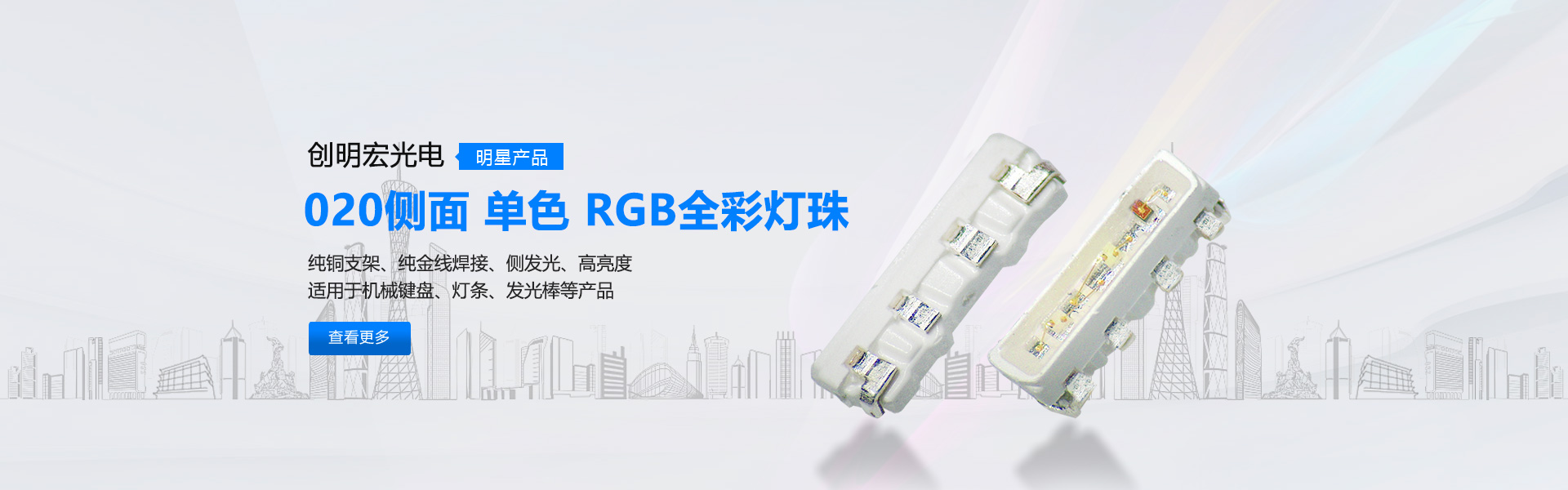 深圳市創明宏光電有限公司(簡稱“創明宏光電”),注冊資本600萬人民幣.是一家集開發,生產,銷售和售后服務為一體的光電照明高科技企業,公司專注于LED封裝,主要封裝型號有Chip指示類LED: 0402、0603、0805、1206、0602、0802、1204、1205、1615、1209、0807等;Top照明類LED:2214、3014、3020、3528、2835、3433、020、3030、5050、5730、2525、3535、小蝴蝶LED等系列燈珠產品,這些產品廣泛應用于3C數碼,汽車燈,燈飾照明,戶外亮化,舞臺燈光,植物燈,攝影補光燈,安防監控等領域!